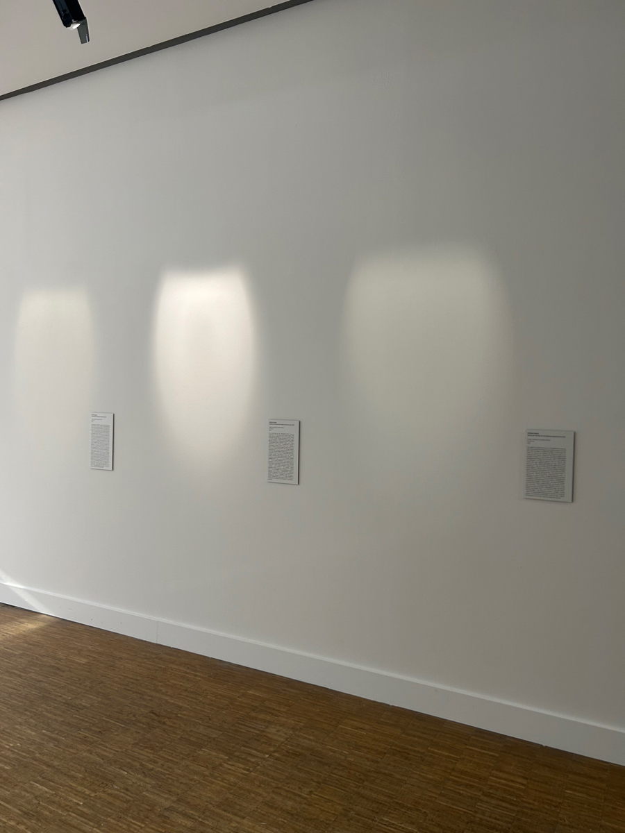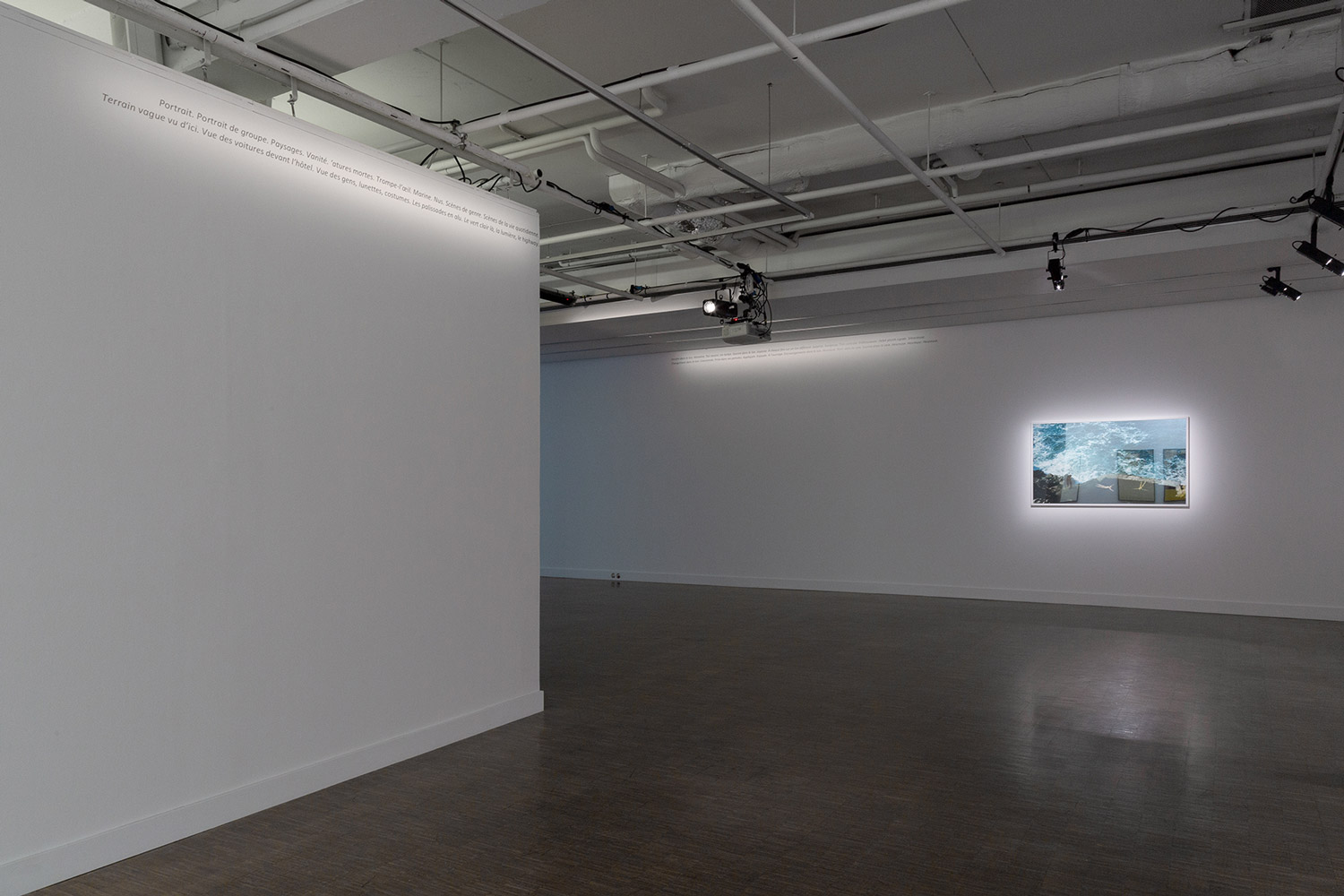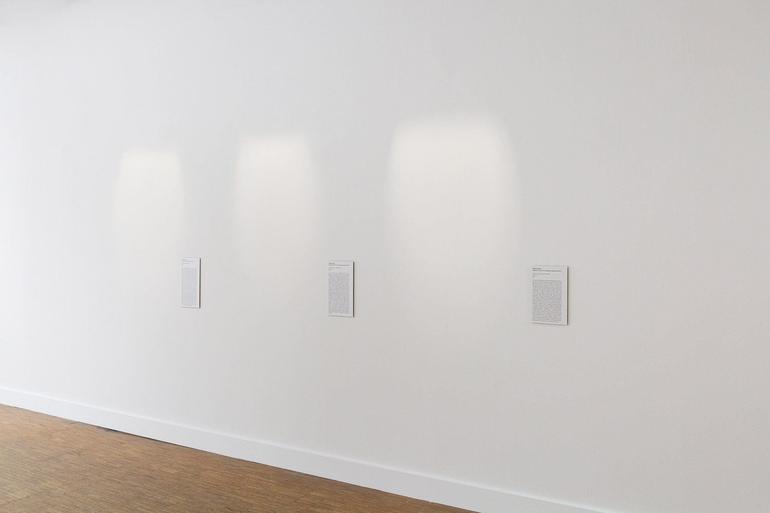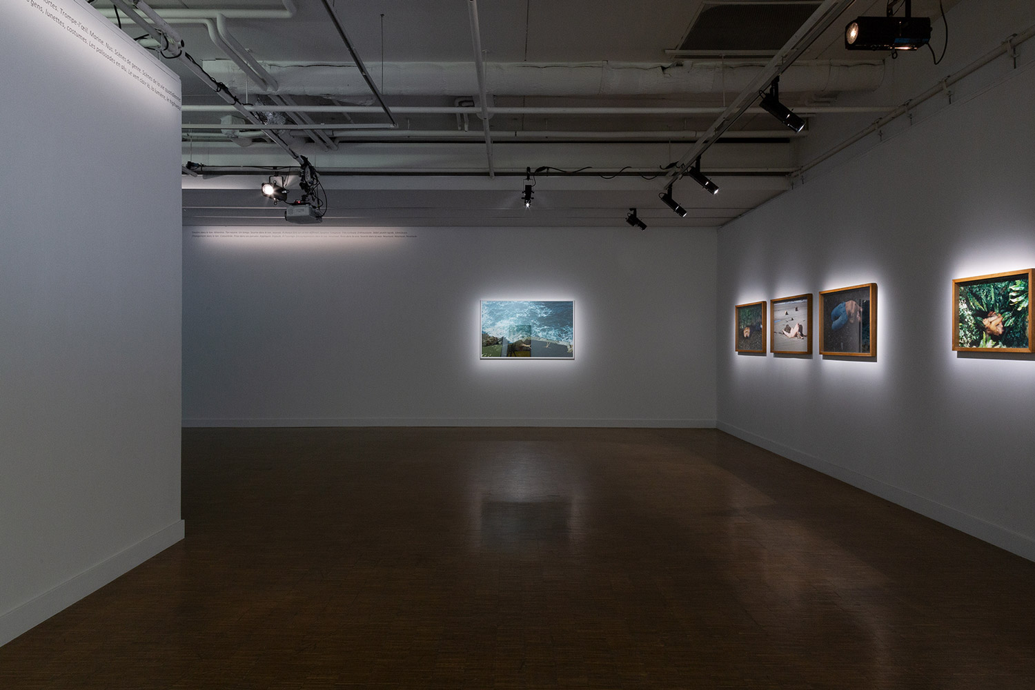 Dans les Cartels, c’est le dispositif expographique et son discours qu’on s’approprie pour la distance qu’ils permettent de créer entre, d’une part, ce qui est dit de ce qui est montré, et d’autre part, cela même qui est montré : à côté d’une ostensible absence d’œuvre au mur (de photographie, pour être plus précis), un texte, tel un ‘vrai’ cartel, commence par en remplir la fonction usuelle (fournir au public des éléments techniques, biographiques, ‘hématiques etc., sur un expôt et son auteur). Mais très vite, il fait cela de manière digressive, comme en biais. Un peu comme un à côté de qui créerait un à la place de, mais incertain, étrangement im/précis.