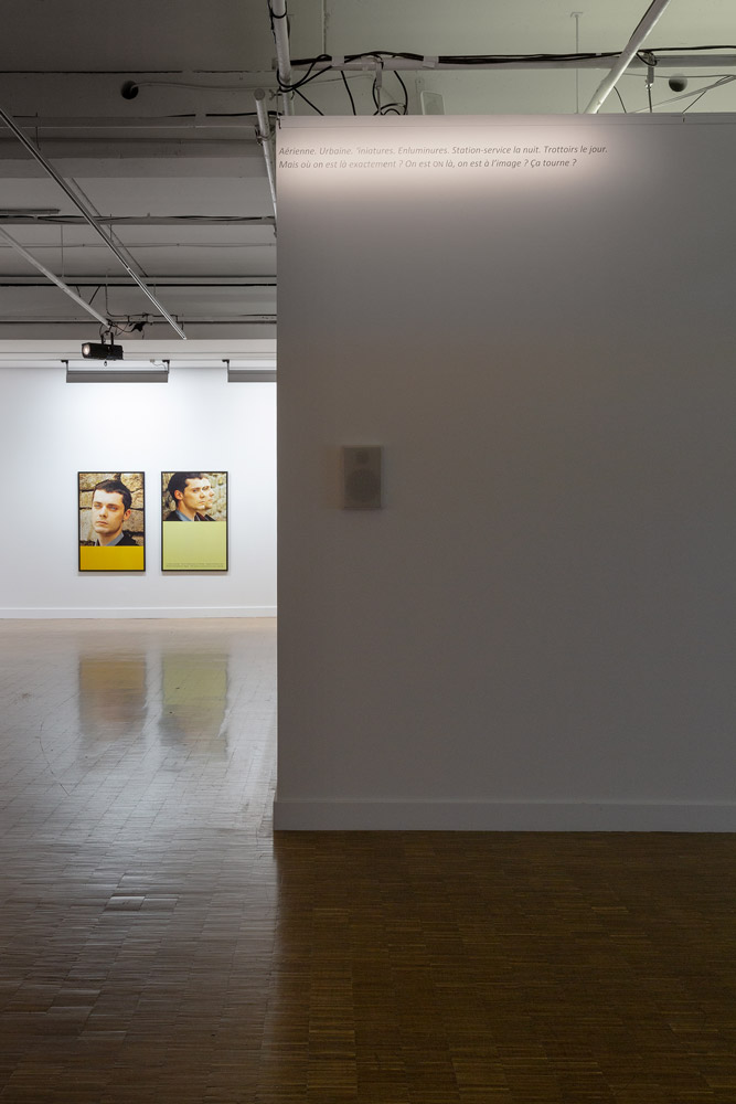 Dans les interlocutions comme dans les récits ainsi diffusés dans l’espace, on ne sait trop si les thèmes ou motifs sont d’eux-mêmes illogiques ou simplement parasités par une petite friture dans l’énonciation. Et dans le léger trouble de l’audition ainsi créé, on se demande s’il s’agit d’une bande originale, d’un script ou d’une critique qu’on entend là, comme en larsen à ce qu’on voit sur les murs.